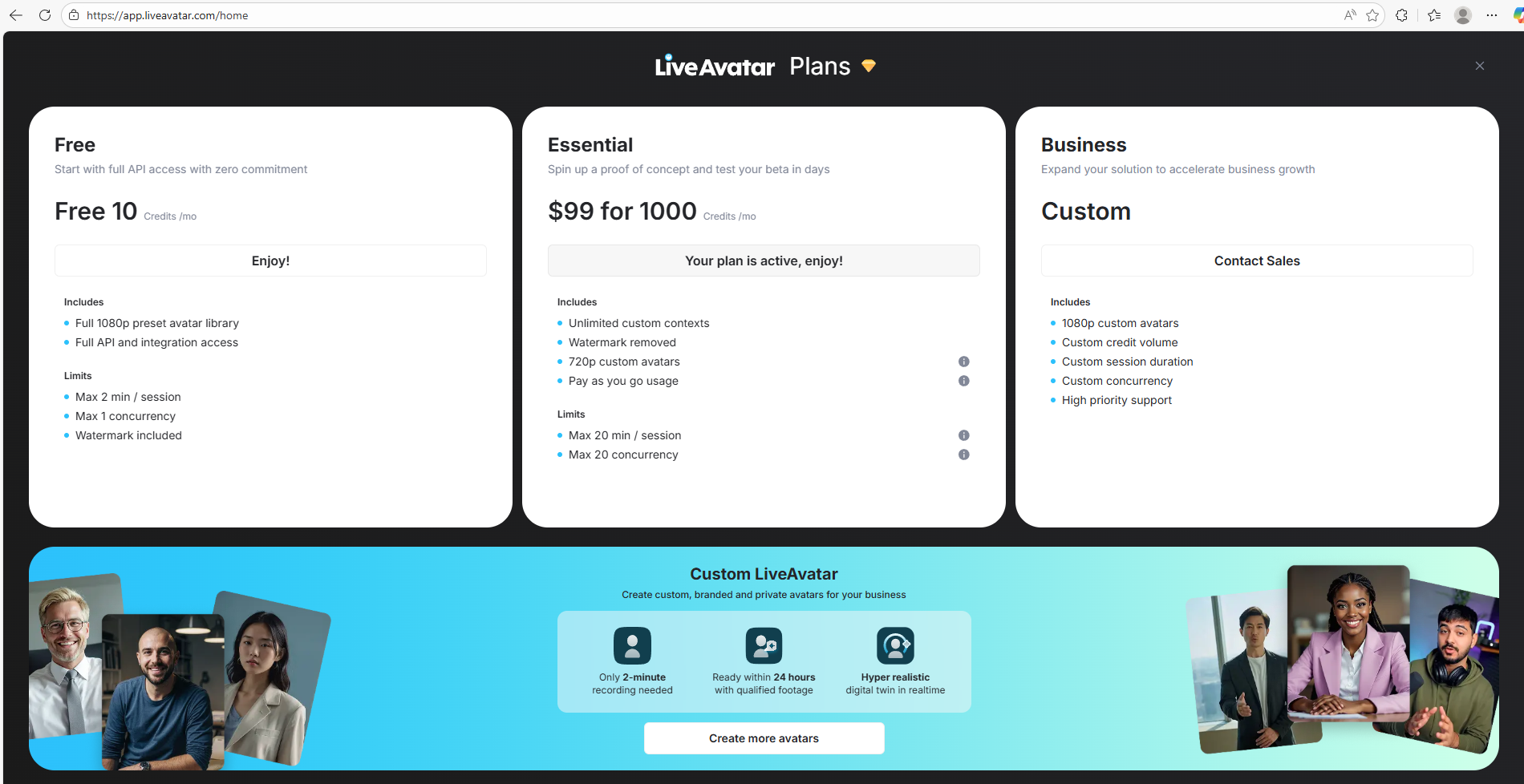 Live Avatar Credits Deducted Immediately on Session Creation (Testing Blocker)