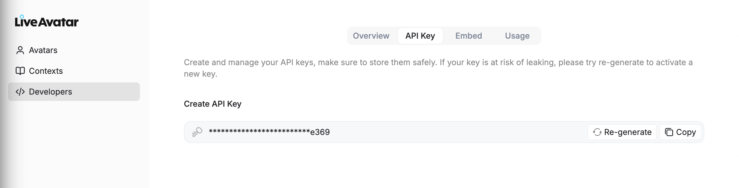 Unfortunately, your existing HeyGen API keys are not compatible with LiveAvatar. We are working on a migration pathway to enable you to transfer over your existing Avatars to your LiveAvatar account.